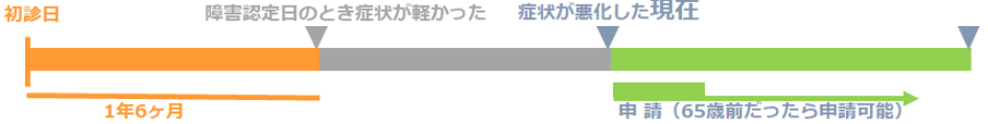 障害認定日の時は病状が軽く、その後症状が重くなった人が申請できるパターンです。