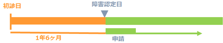 通常の障害年金請求パターンです。障害認定日から障害年金が支給されます。